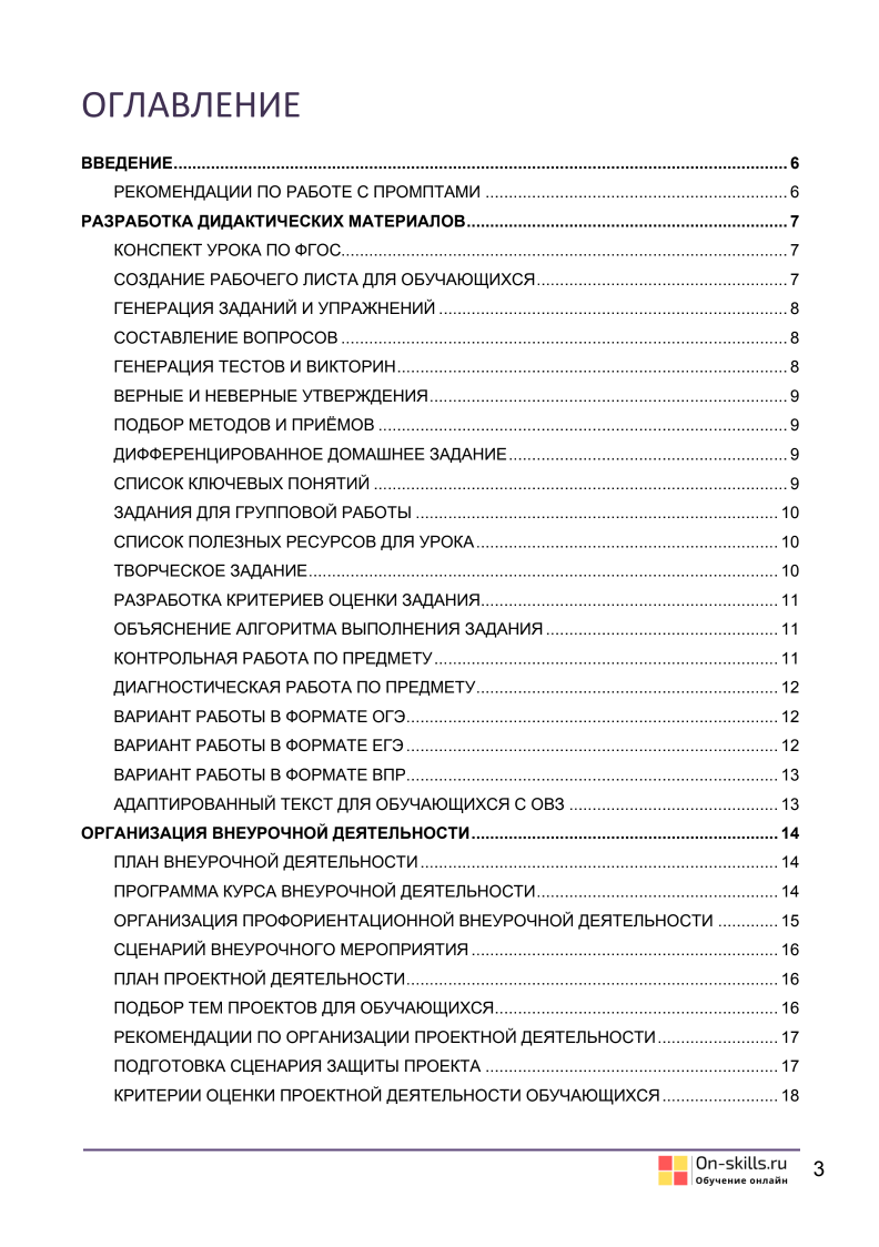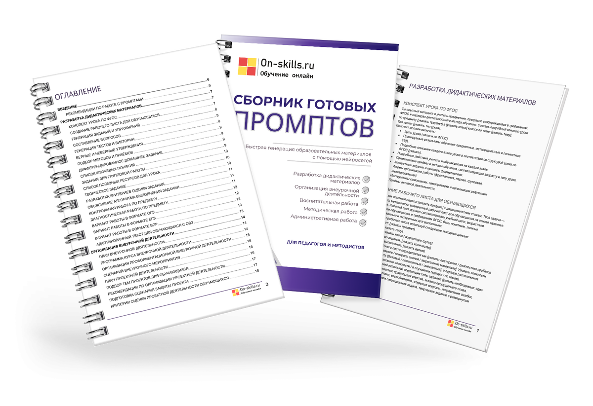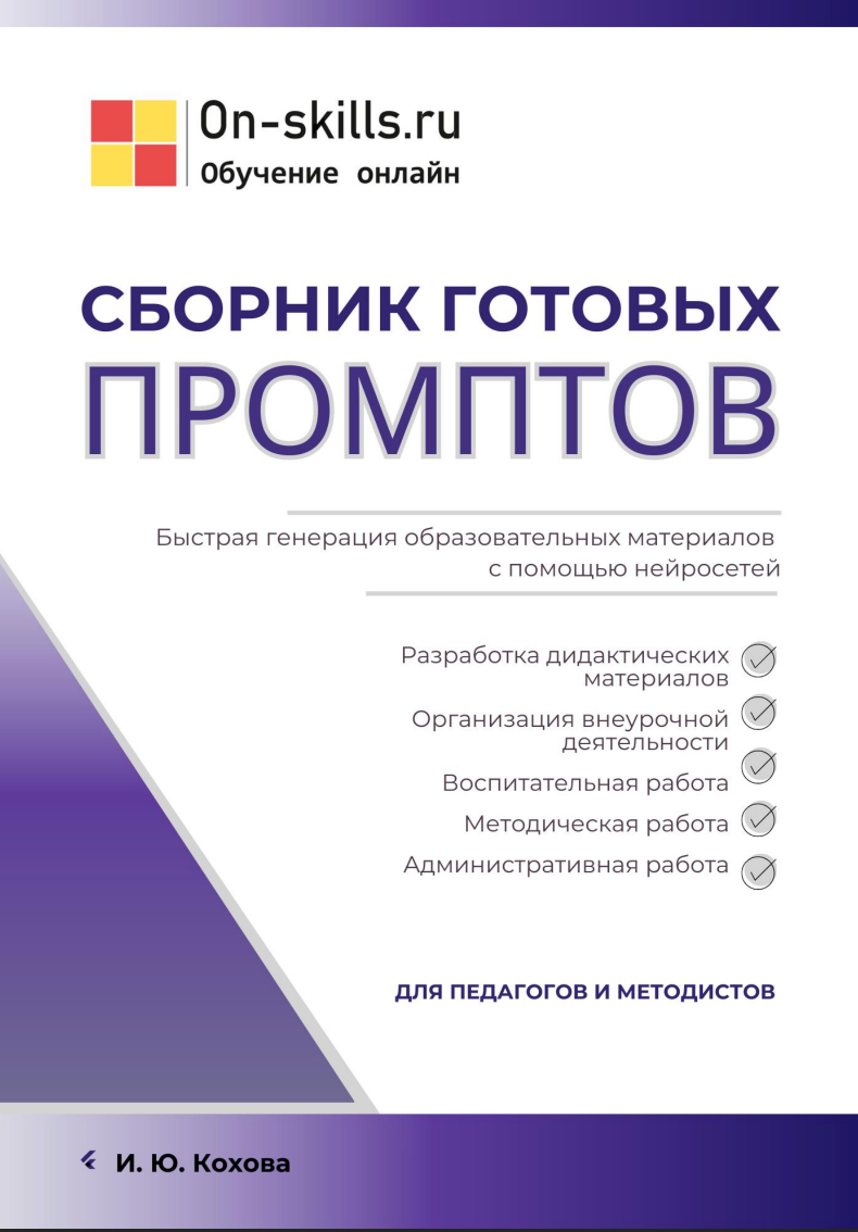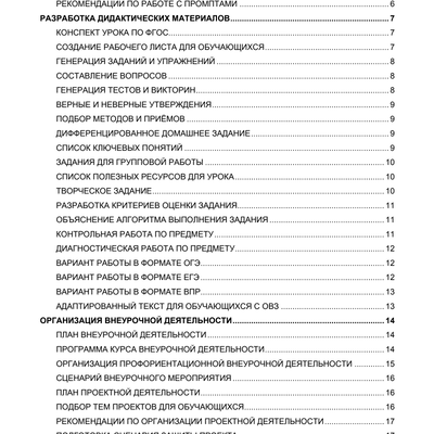 в помощь педагогу и методисту - 80+ промптов для генерации материалов по основным направлениям: подготовка дидактических материалов, методическая и воспитательная работа, организация внеурочной и проектной деятельности, написание аналитических отчётов