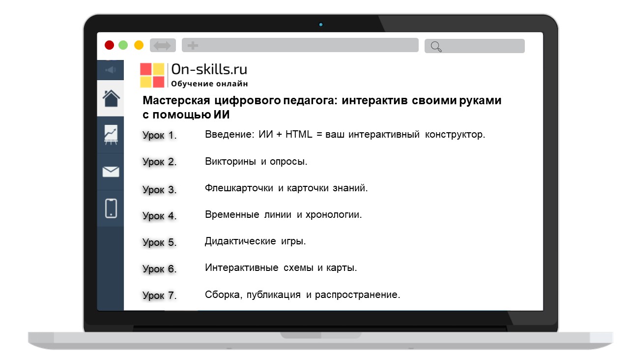 - Курс "Мастерская цифрового педагога": 7 уроков, видеоинструкции, примеры и текстовые материалы, сертификат (36 часов)